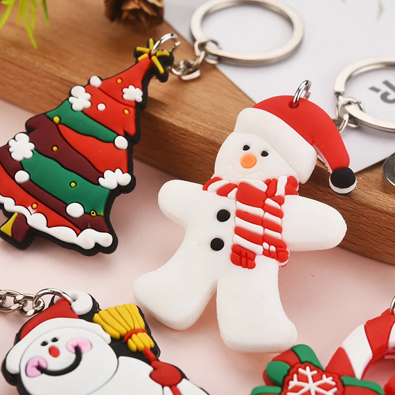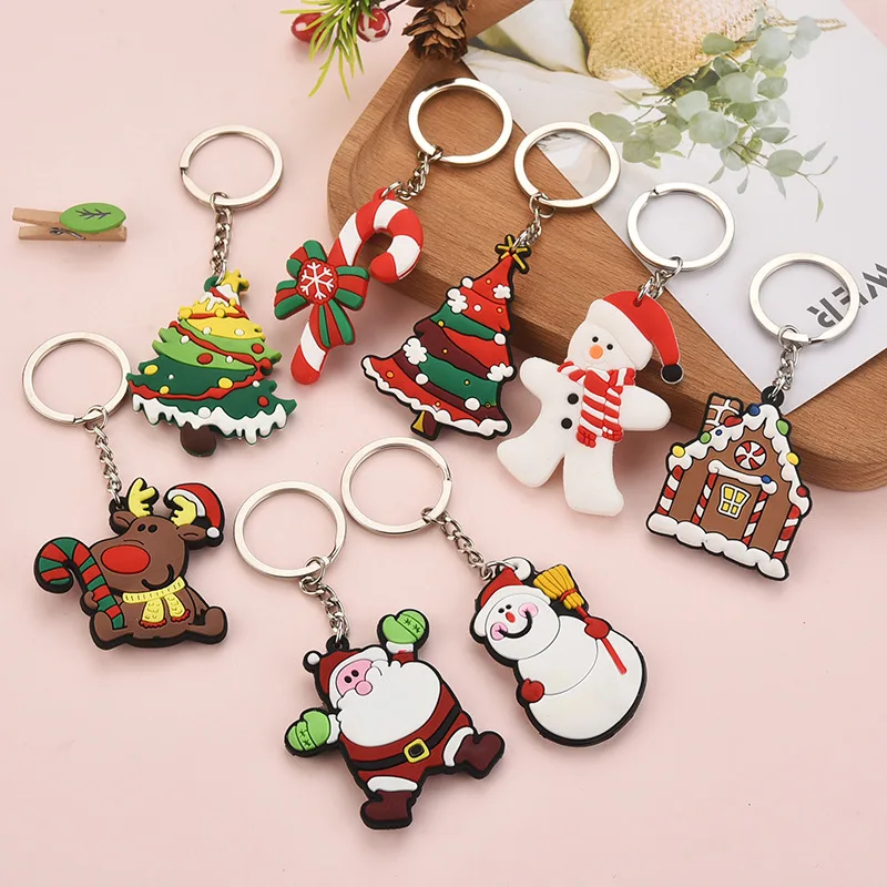 Новая ПВХ цепочка для ключей с Санта-Клаусом, хит продаж, рождественские подарки, брелок для ключей для женщин и мужчин, Автомобильные сумки, Подвесные Брелки, подарки, аксессуары