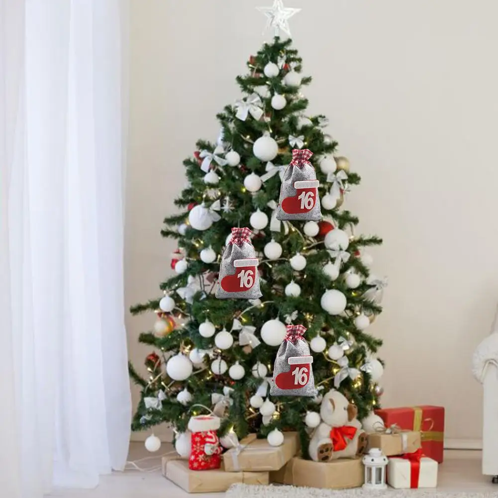 24 шт. Рождественский календарь обратного отсчета сумка подвесной, для конфет подарочные мешки мешок с зажимами наклейки веревка домашнего рождественского декора