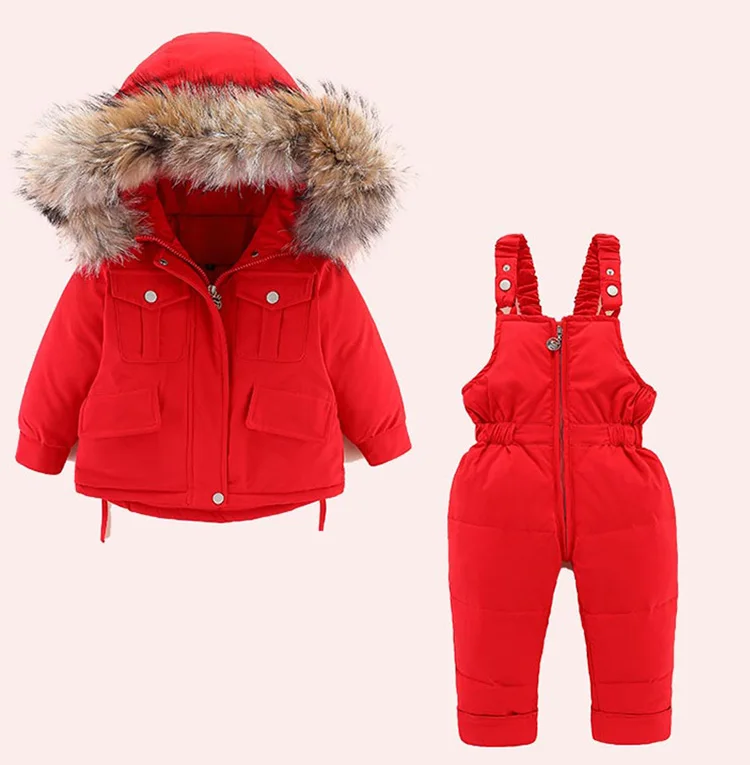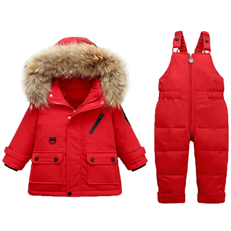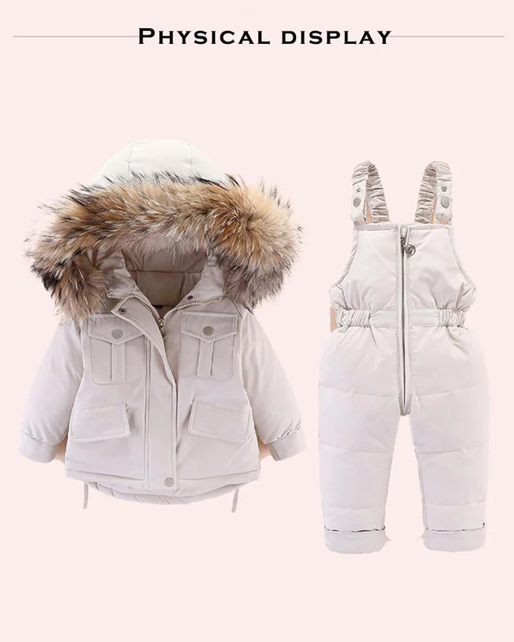 Пуховое пальто + комбинезон на утином пуху + воротник из натурального меха