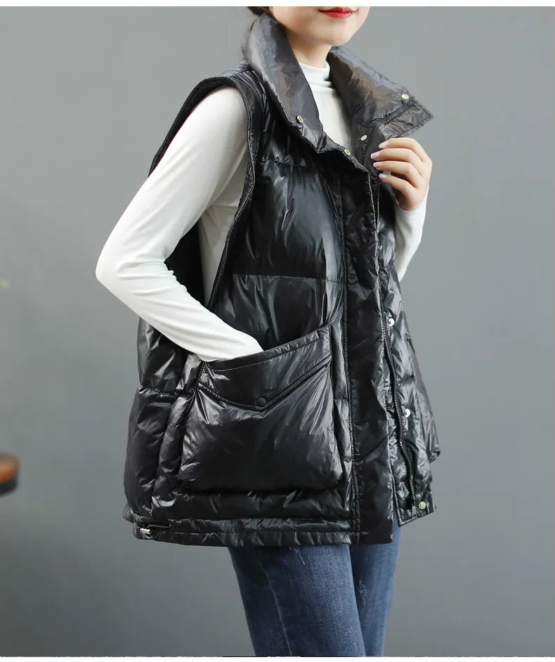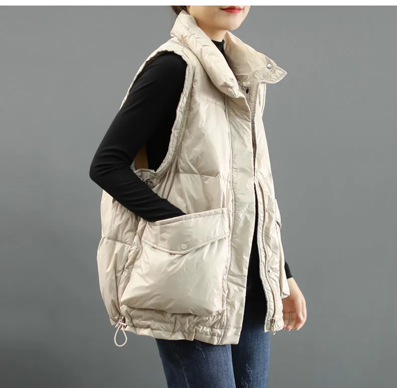 Белый пуховик на утином пуху; Корейский стиль; Теплые повседневные стеганые жилеты большого размера