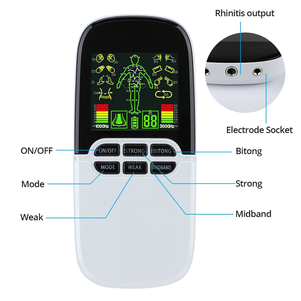 Особенности 1. Принимает полупроводниковый светильник с длиной волны 660нм и 8-12 мВт низкой видимой интенсивности лазера, чтобы активировать физиологию крови для лечения облучения в полости носа. 2. Встроенный 8 режимов стимуляции для многоцелевого массажа, включая акупунктуру, инсульт, массаж, купирование, манипуляцию, соскабливание, снижение веса и иммунную регуляцию, может эффективно облегчить боль и усталость, способствует циркуляции крови и улучшает работу мышц, особенно уникальное «иммунное регулирование» Функция, которая усиливает и координирует сопротивление организма, чтобы помочь вашему организму преодолеть внешние бактерии, вирусы и другие патогены. 3. Большой цветной ЖК-дисплей обеспечивает четкий и прямой визуальный эффект для лечения как днем, так и ночью, даже в тусклой среде, с простым в использовании управлением кнопками, не стесняйтесь переключать режимы, регулировать уровень интенсивности и включение/выключение питания в соответствии с вашими предпочтениями. 4. Идеальный подарок для вашей семьи и друзей, чтобы показать свою любовь и заботу о своем здоровье, он может предложить эффективный ринит для ухода за носом и расслабляющую боль и облегчение усталости для всего тела. Технические характеристики Материал: АБС-пластик Цвет: белый Питание AC/DC 4,5 V Выходной ток: 0-15 мАч Режим массажа: 8 режимов (акупунктура, инсульт, массаж, купирование, манипуляция, соскабливание, снижение веса, иммунная регуляция) Уровни интенсивности: 8 уровней Частота: 1000 Гц, 3000 Гц Таймер: 15 минут Тип батареи: встроенный литий-ионный аккумулятор 300 мАч Источник питания: зарядка через USB Размер основного блока: appr. 134*64*20 мм Примечание: Пожалуйста, учитывайте погрешность в 1-3 см из-за ручного измерения и убедитесь, что вы не возражаете перед покупкой. Цвет фактического товара может немного отличаться от изображения из-за различных компьютерных экранов и настроек дисплея. Спасибо за понимание! Посылка включает в себя: 1 * устройство цифровой терапевтической машины 10 * электродные прокладки (5 пар) 2 * провод электрода (поддержка 2 пользователей одновременно) 1 * USB кабель 1 * Лазер от ринита 1 * Руководство пользователя