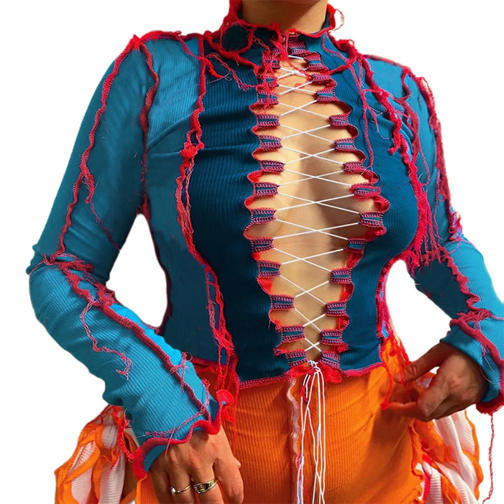 Новые лоскутные сетчатые ажурные Прозрачные топы для девочек от 2 до 2 лет, Осенние уличные кружевные футболки с принтом крест-накрест шикарные вечерние рубашки