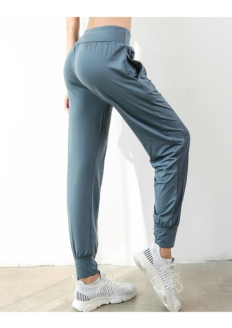 Женские спортивные штаны с карманами в полоску, спортивные штаны для бега с эластичной резинкой на талии, спортивные свободные штаны для тренировок