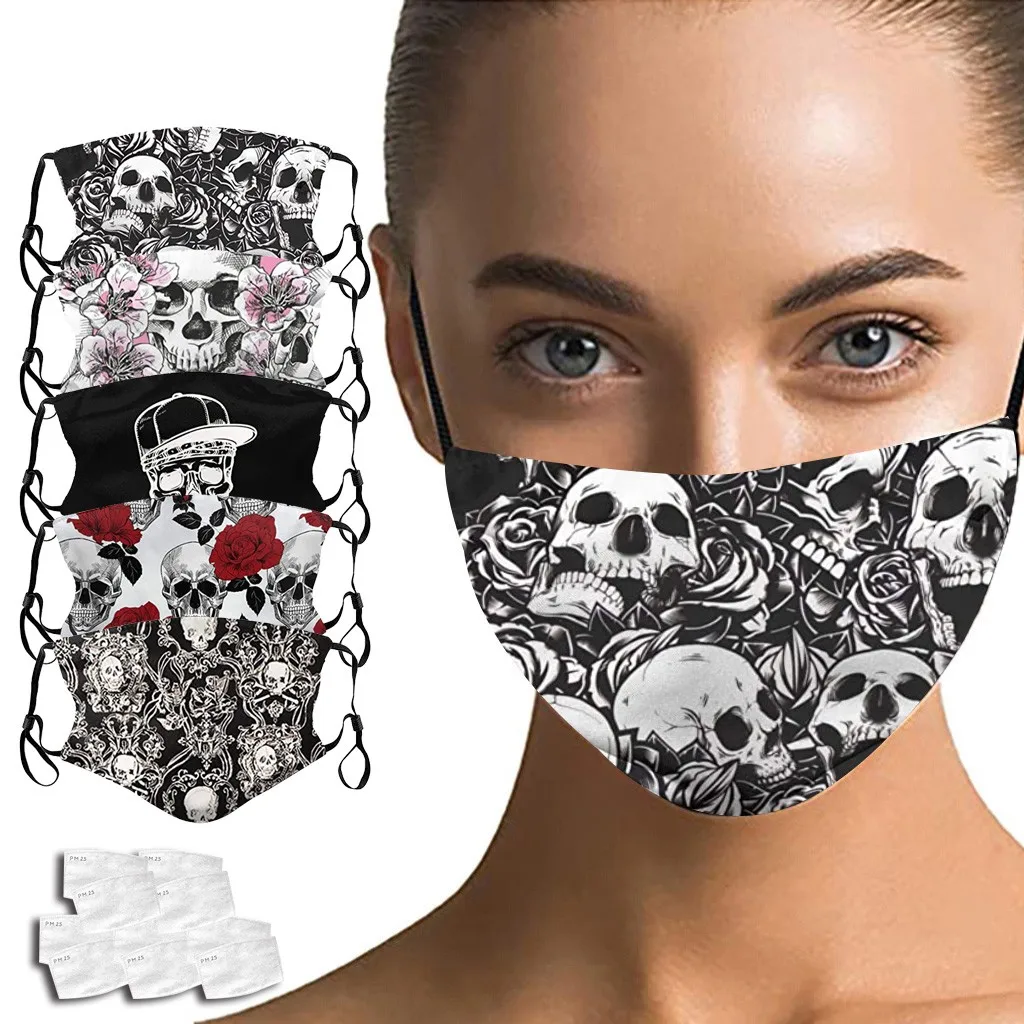 Череп унисекс наполовину моющаяся маска для рта на открытом воздухе многоцветная