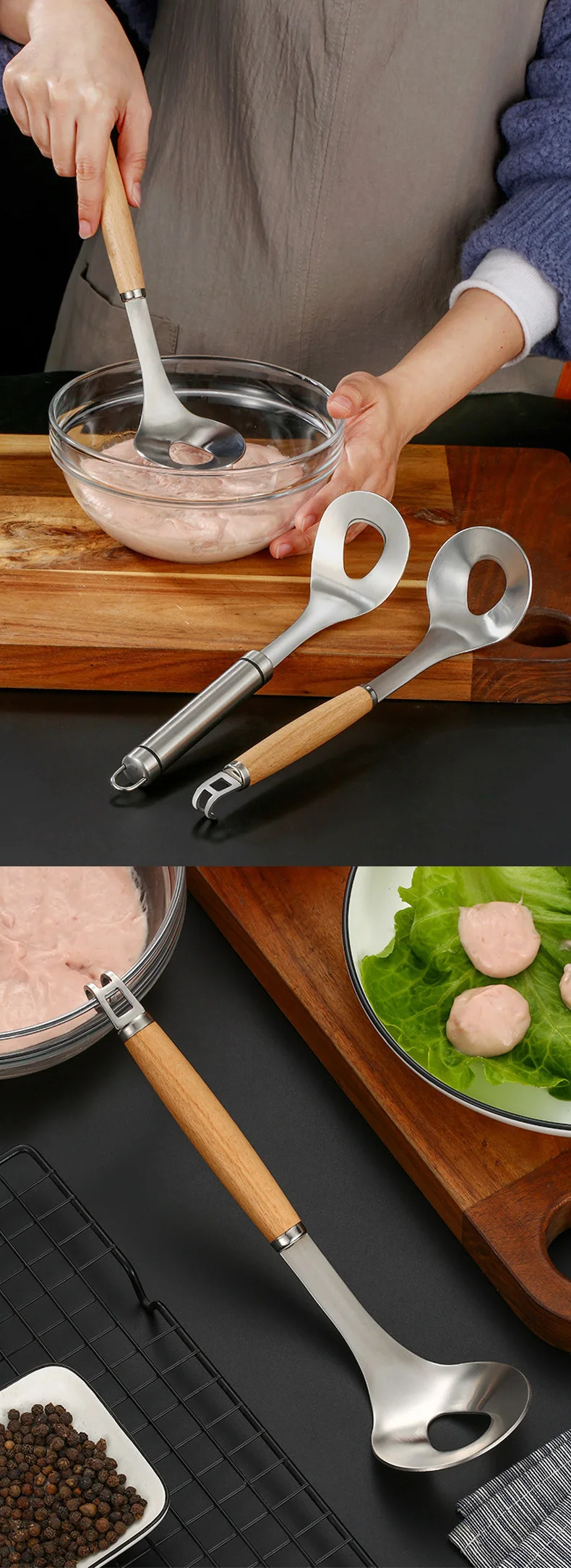 Антипригарная креативная ложка для приготовления мясных шариков с эллиптическим отверстием для утечки мясных шариков кухонная утварь-гаджет инструмент для мяса Особенности: Изготовлен из толстой стали, прочный и удобный. Эллиптическое отверстие утечки разработано человеческими таблетками ручного вытягивания, и формирующий эффект meatball хорош. Фрикадельки, креветки скользкие и овощные таблетки могут быть сделаны. При нажатии ложки могут образовываться фрикадельки, легко и без усилий не окрашивать руки. Длинная и удобная ручка, дизайн с изогнутой ручкой, подходит для кривой руки и удерживает более комфортно. Хвостовое отверстие ручки можно повесить и хранить, что более удобно и экономит пространство. Примечание: Фактический цвет может отличаться от того, что светильник отличается от изображения из-за различных эффектов монитора и светильник Возможны отклонения на 1-3 см вследствие измерений вручную Спецификация: Материал: нержавеющая сталь Размеры: около 24x6,5 см Посылка: 1х машина для изготовления мячей