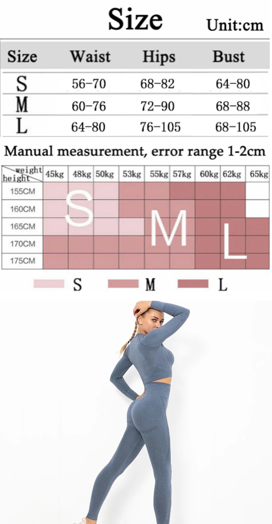 [Название товара] спортивный костюм [Размер] S,M,L [Материал] нейлон, спандекс [Сезон] Весна, лето, осень и зима. [Особенность] дышащая, быстросохнущая, цветная; [Используется для] фитнеса, йоги, тренажерного зала, бега, тренировок, занятий на открытом воздухе, баскетбола, танцев и т. д. Особенности 1. Хорошая воздухопроницаемость, влагопоглощающий пот, хороший комфорт, является первым выбором для женских видов спорта. 2. Высококачественная ткань, хорошо тянущаяся, цветная и здоровая для вашей кожи. 3. Тонкая работа, высококачественный бренд 4. Высокая эластичная ткань, удобная и сексуальная. 5. Важно, что вы этого заслуживаете! Примечание: 1. Пожалуйста, выберите размер в соответствии с размером таблицы, пожалуйста, допускайте погрешность в 1-3 см, так как ручное измерение отличается, спасибо. 2. Может быть очень небольшая Хроматическая аберрация между изображением и реальным изображением, потому что различные углы камеры и освещение.