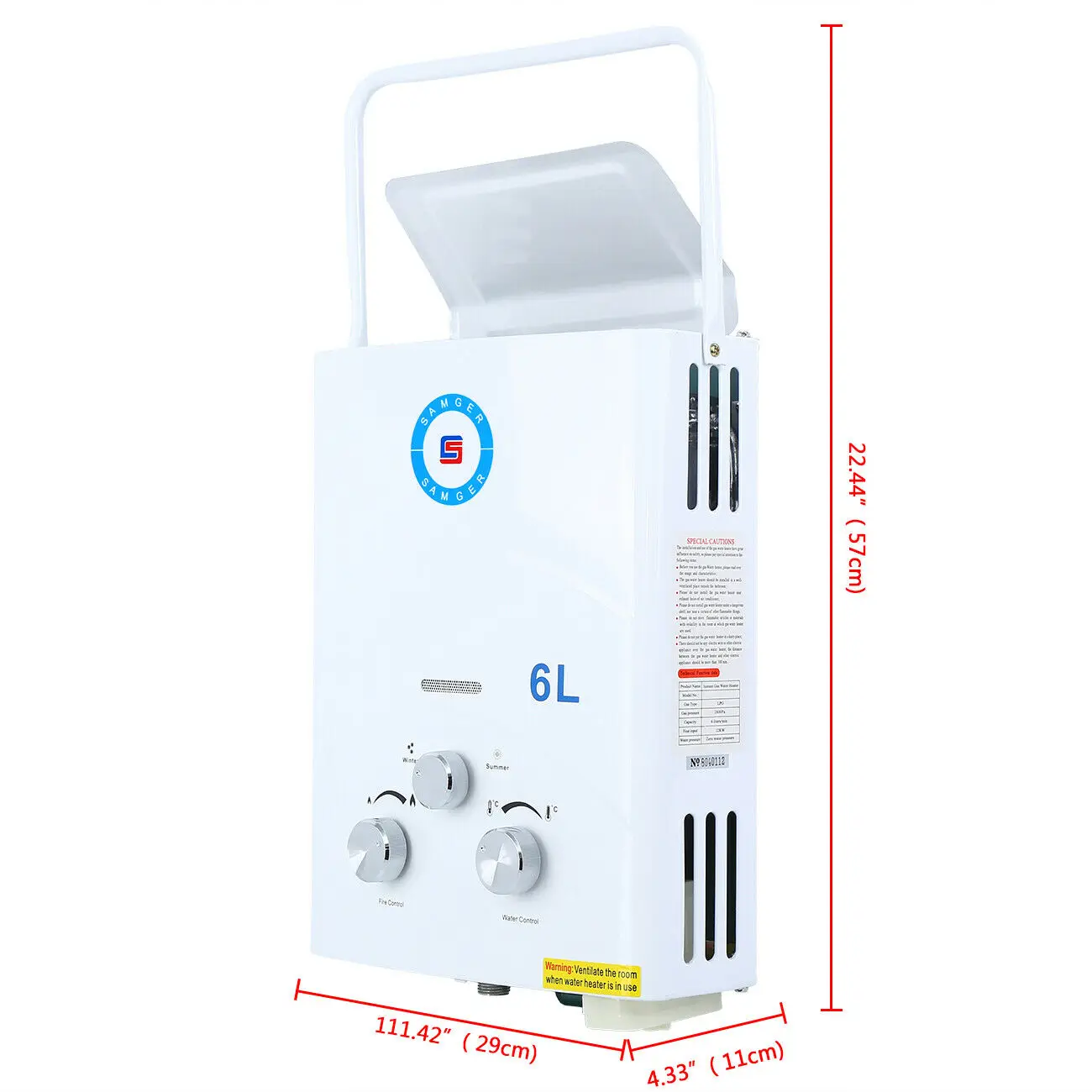 Подключение к воде: 1/2''Автоматическое зажигание двумя D батареями (не входят в комплект)Подключение к источнику питания не требуетсяЗначение подключения 28 мбарВес: прибл. 5 кгРазмеры: прибл. 370x290x110 ммВключая сборочный материал и инструкцииОписание:Благодаря этому мгновенному водонагревателю теперь вы можете быстро и легко производить горячую воду в любом месте.Независимо от того, Берете ли вы его с собой в дом отдыха, караван или дом на колесах или просто хотите использовать его в саду, у вас всегда есть возможность наслаждаться теплой водой.Водонагреватель предназначен для многих целей, таких как. Используется для принятия душа, ухода за животными, очистки окон, мытья автомобиля и многого другого.Просто подключите баллон газа пропана к Газовому водонагревателю и садовому шлангу, и устройство готово к использованию. Постоянное подключение к источнику питания не требуется, так как зажигание происходит через две D батареи (не входят в комплект).8 л LPG водонагревательОписание:-- Не использовать в закрытых помещениях-- С этим мгновенным водонагревателем теперь вы можете быстро и легко генерировать горячую воду в любом месте.-- Независимо от того, Берете ли вы его с собой в праздничные квартиры, караван или дом на колесах или просто хотите использовать его в саду, у вас всегда есть возможность наслаждаться теплой водой.-Мгновенный водонагреватель используется для многих целей, таких как душ, уход за животными, чистка окон, мытье автомобиля и многое другое.-- Просто подключите газовую бутылку пропана до 11 кг и садовый шланг и устройство готово к использованию.-Постоянное подключение питания не требуется, так как зажигание происходит через две D батареи (не входят в комплект).Характеристики:Цвет белыйМощность: 16 кВтТип газа: пропан или LPG8 литров в минуту примерно 25 ° CДавление воды: от 0,025 до 0.8MPaТип выхлопной трубы: открытый и силовой Тип выхлопной трубы