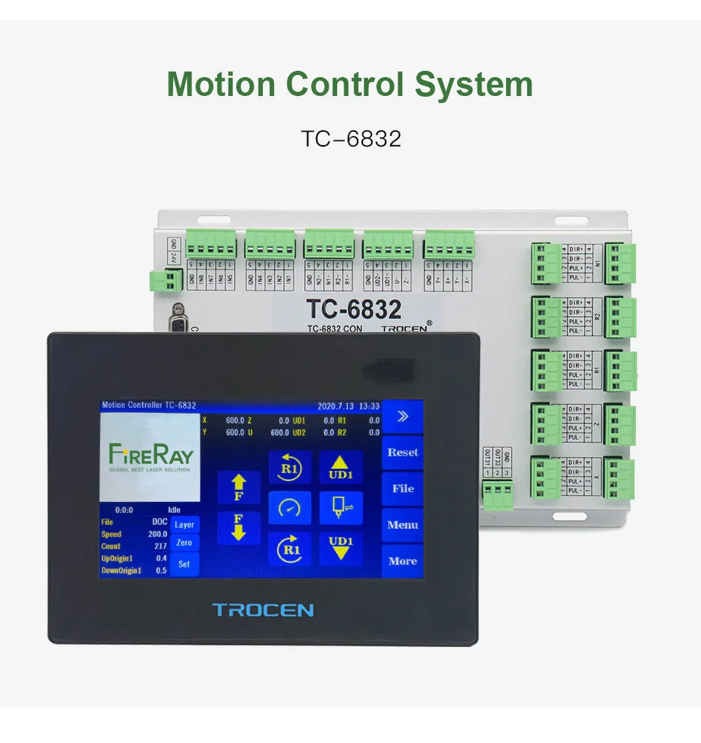 TC6832 is a high-end motion controller developed for the blade cutting industry. It integrates spindle cutting, vibrating knife cutting, V-groove cutting, round knife cutting, red light origin, brushes, punching, cutting and other functions.