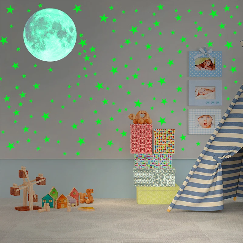 Звездное небо луна звезды светящиеся наклейки на стену для детской комнаты потолочные лестницы домашний Декор 3D точки наклейка светится в темноте в спальне
