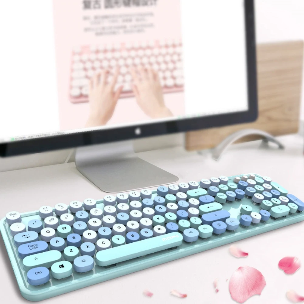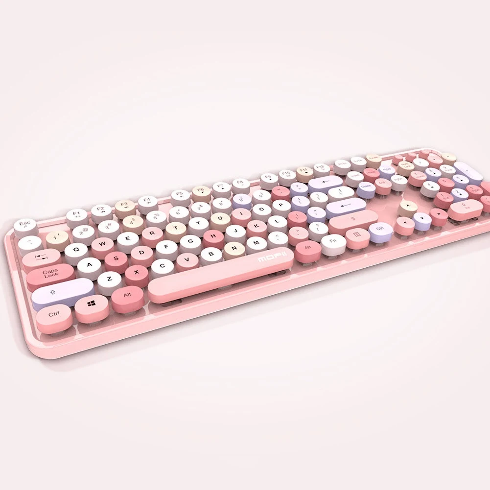 Универсальный милый портативный беспроводной 2,4 Ghz клавиатура мышь набор для офисного компьютера Характеристики: Клавиатура имеет круглые кнопки с дизайном ярких цветов, что мило. Это plug and play, который удобен в использовании. Совместим с Windows XP/7/8/10. Название товара: Беспроводная клавиатура + мышь Материал: АБС-пластик Совместимость: для Windows XP/7/8/10 Интерфейс: USB Аккумулятор: 2 батареи AA (не входят в комплект) Оптическое разрешение: 1600 DPI Количество клавиш: клавиатура: 104 мышь: 5 Цвет: смешанный цвет/монохромный (опционально) Характеристики: беспроводной, милый, подключи и работай Мышь Размеры: 101 мм x 75 мм x 34 мм/3,98 "x 2,95" x 1,34 "(прибл.) Клавиатура Размеры: 44,5 см x 13,6 см x 3,5 см/17,52 "x 5,35" x 1,38 "(прибл.) Примечания: Благодаря светильник и экрана Цвет Товара может быть s светильник ly отличается из-за характеристик монитора компьютера. Возможны незначительные отклонения в размерах из-за различных измерений вручную. Посылка включает в себя: 1 x беспроводная клавиатура 1 x беспроводная мышь 1 x Приемник 1 x Руководство пользователя