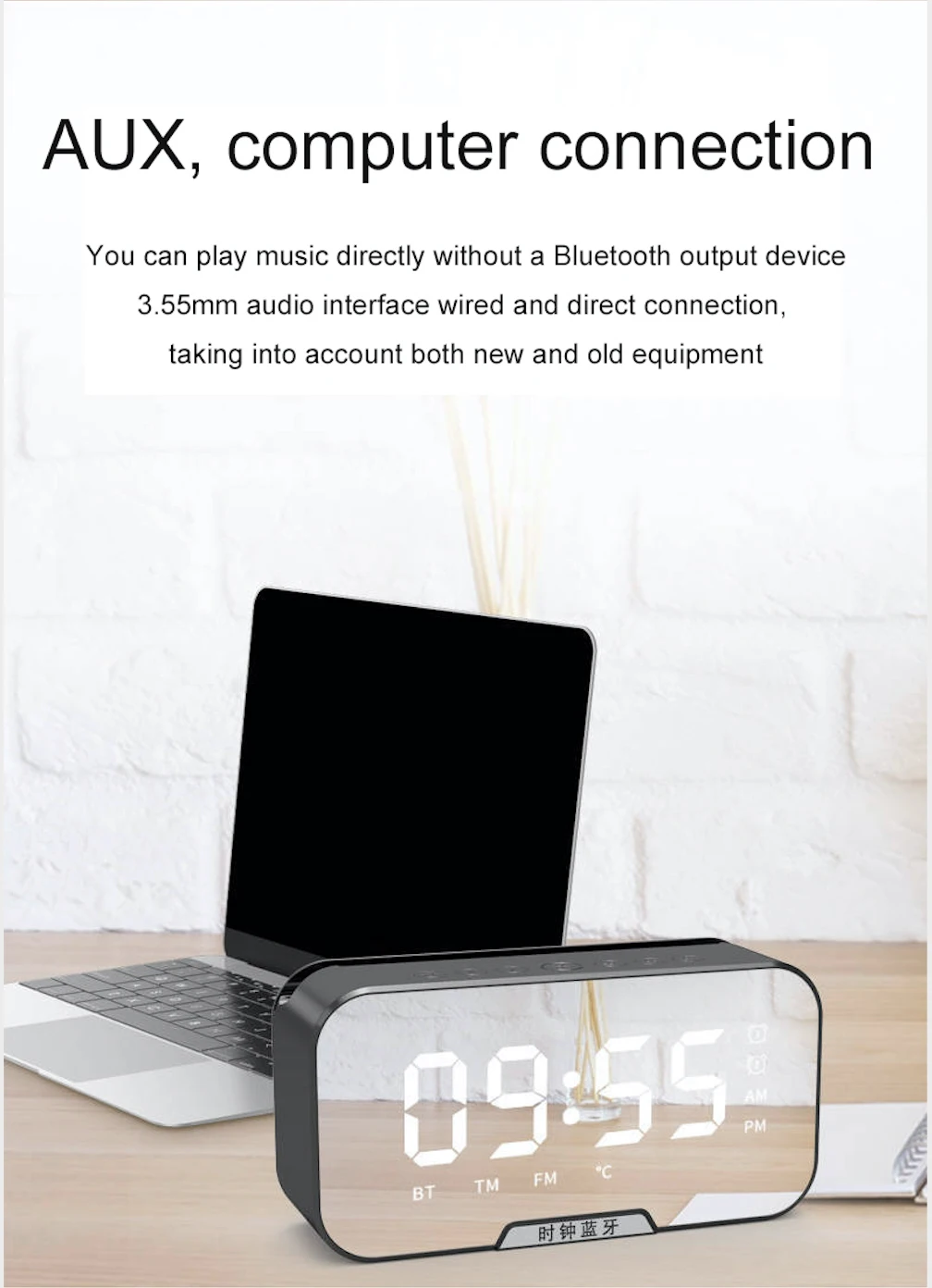 Характеристика: 1. Часы Bluetooth карты динамик, термометр дисплей, Bluetooth Вызов, TF карта воспроизведения, fm-радио, скрытый мобильный телефон держатель 2. Большие динамики Gaoqian, высококачественный оригинальный звук, полный и чистый звук и цвет, каждое биение нот может касаться сердца 3. Это не только динамик, но и математический будильник, многофункциональная мода не является монотонным, пользовательские двойные будильники, хорошая музыка просыпается красота 4. Он также может воспроизводить музыку напрямую без устройства с выходом Bluetooth. Аудиоинтерфейс 3,55 мм подключен напрямую с учетом новых и старых устройств Спецификация 1. Модель: 021 2. Bluetooth видение: 5,0 3. Емкость аккумулятора: 2200 мАч 4. Диапазон частот: 40 Гц-20 кГц 5. Спецификация: светодиодный экран, будильник, держатель телефона, воспроизведение музыки и т. д. 6. Мощность динамика: 4Ω3W 7. Отношение сигнал/шум: ≥ 70 дБ Посылка включает в себя: 1 динамик xBluetooth 1 х USB кабель для передачи данных 1 х упаковочная коробка Наши продукты поддерживают оптовую продажу, дистрибьюторы могут купить.
