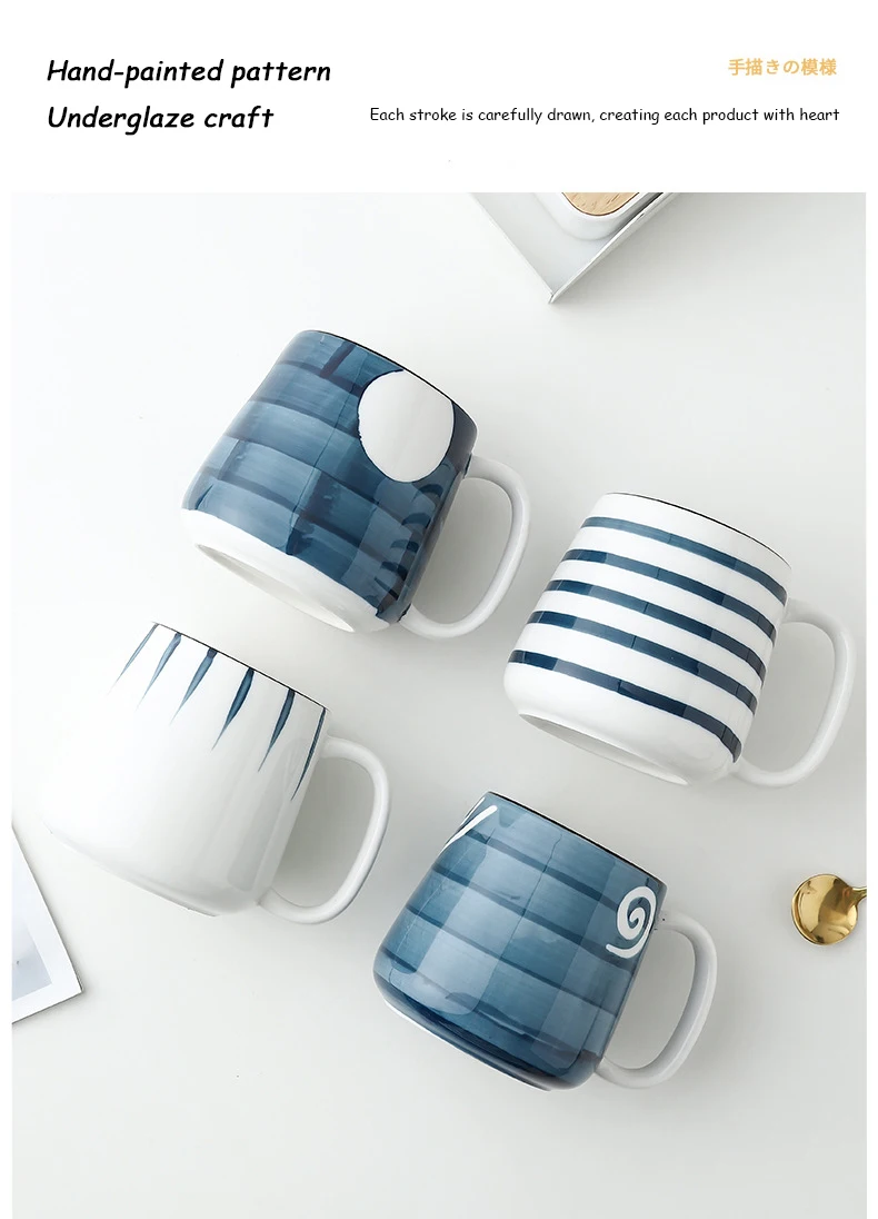 TECHOME, классический стиль, для дома и офиса, керамическая кружка, большая емкость, 500 мл, чашка для воды, белая, голубая, с рисунком, чашка для молока, кружка для кофе, чашка, кружки