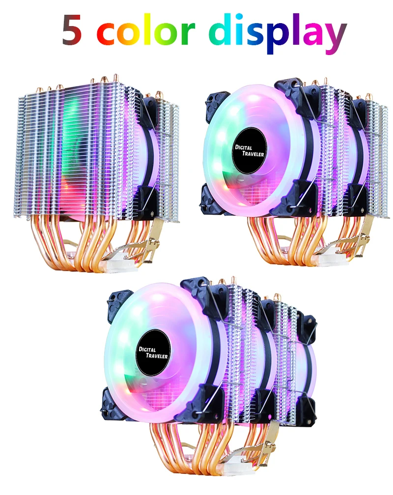 6PH-FA двойной охлаждающая башня CPU Cooler 6 Heatpipe 1/2/3Fan 3/4PIN интерфейс для Intel 1150 1155 1156 1366 2011 AM2/AM3/AM4
