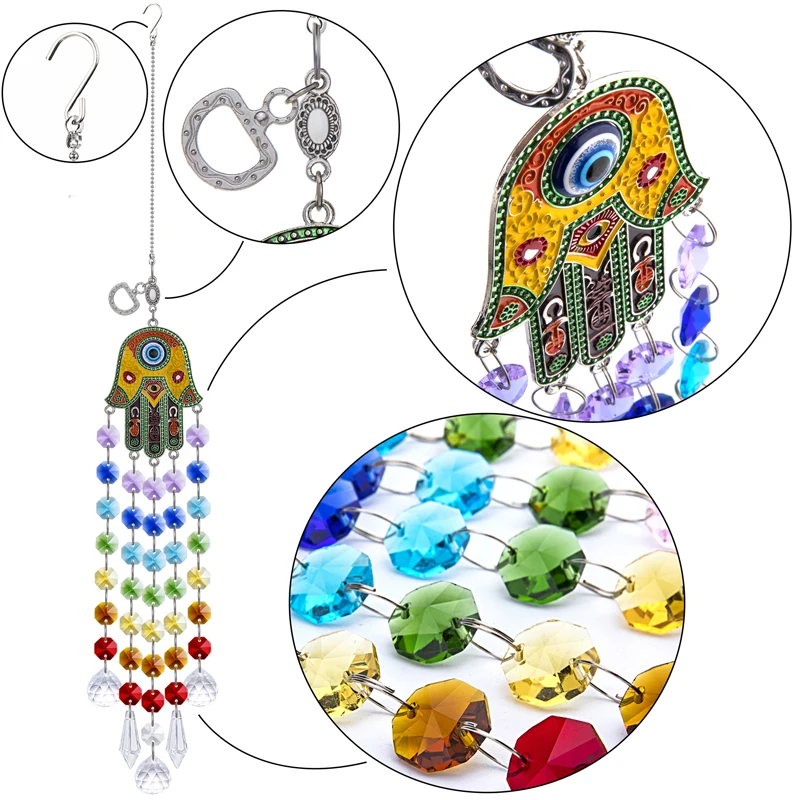 Name:H&D Hanging Crystal Ball And Octagon Beads Chains With Prisms Suncatcher Evil Eye Hamsa Shaped Pendant For Garden Decor Gift