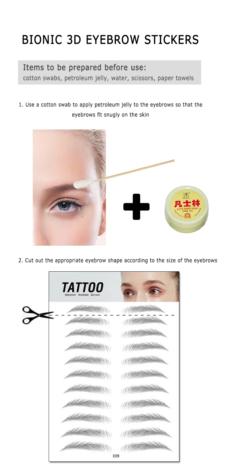 1. Сначала Вырежьте пару наклеек для бровей, попытайтесь как можно больше разрезать по краям бровей, не оставляйте слишком много пустого места.