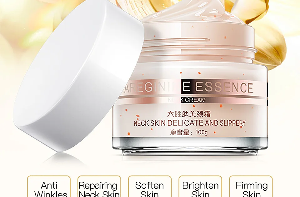 ▶ Net Weight: 100g ▶ Shelf Life: 3 Years ▶ Skin Types: Suitable for various Skin ▶ Ingredients: Six peptides, Nicotinamide, Collagen, Sodium Hyaluronate, Glycerin. ▶ Features: 1. Anti Winkles 2. Lift and Repair Neck Skin 3. Soften and Brighten Neck Skin