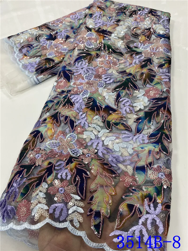 NIAI африканская кружевная ткань 2020 Высокое качество 3D цветок кружевная ткань вышивка бисером французская сетка тюль кружевное платье X3514B-4