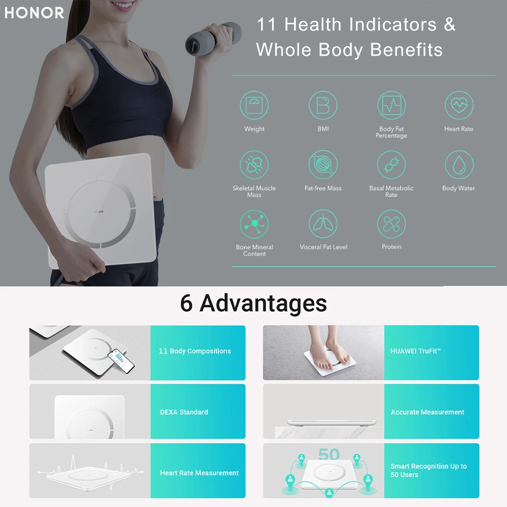 * HONOR Scale 2 может не распознавать пользователей, чьи данные тела очень похожи на другие.
