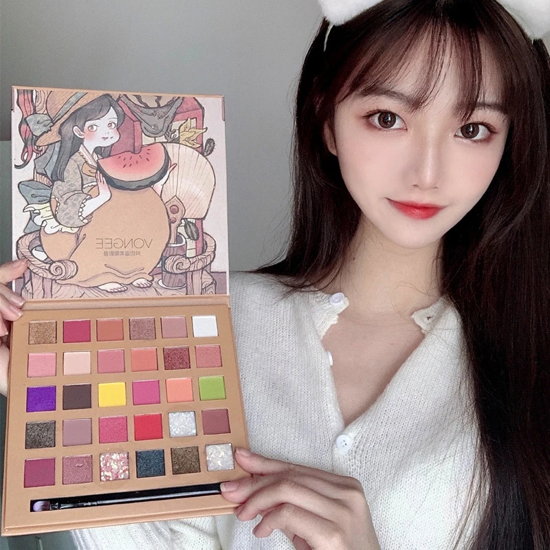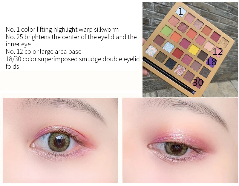 Палитра теней для век изготовлена из 30 цветов мягкого блестящего и матового порошка.