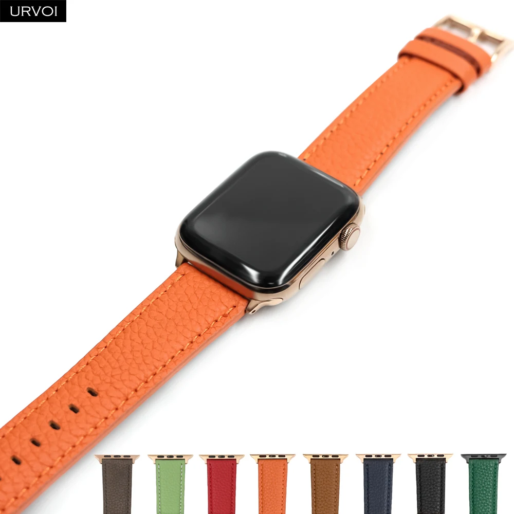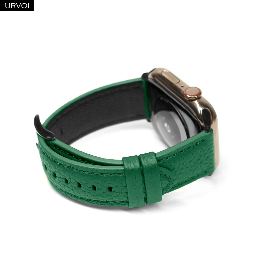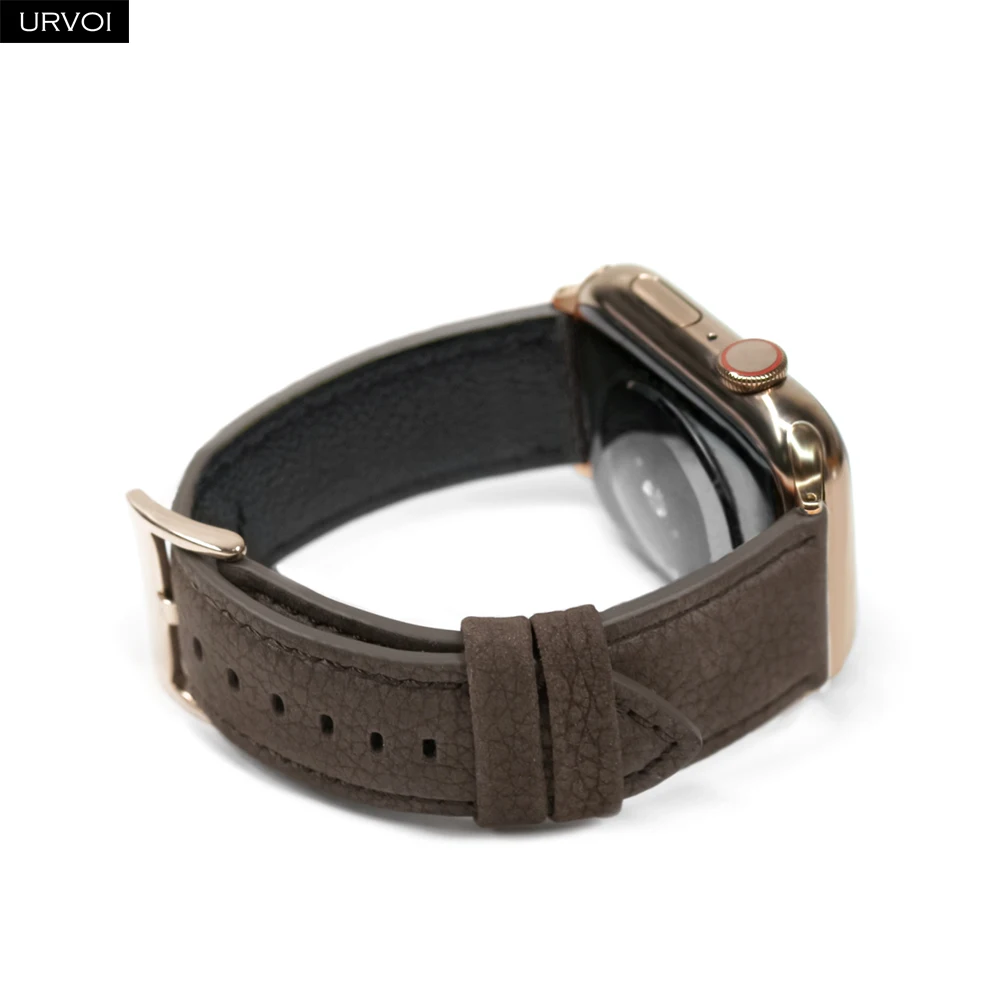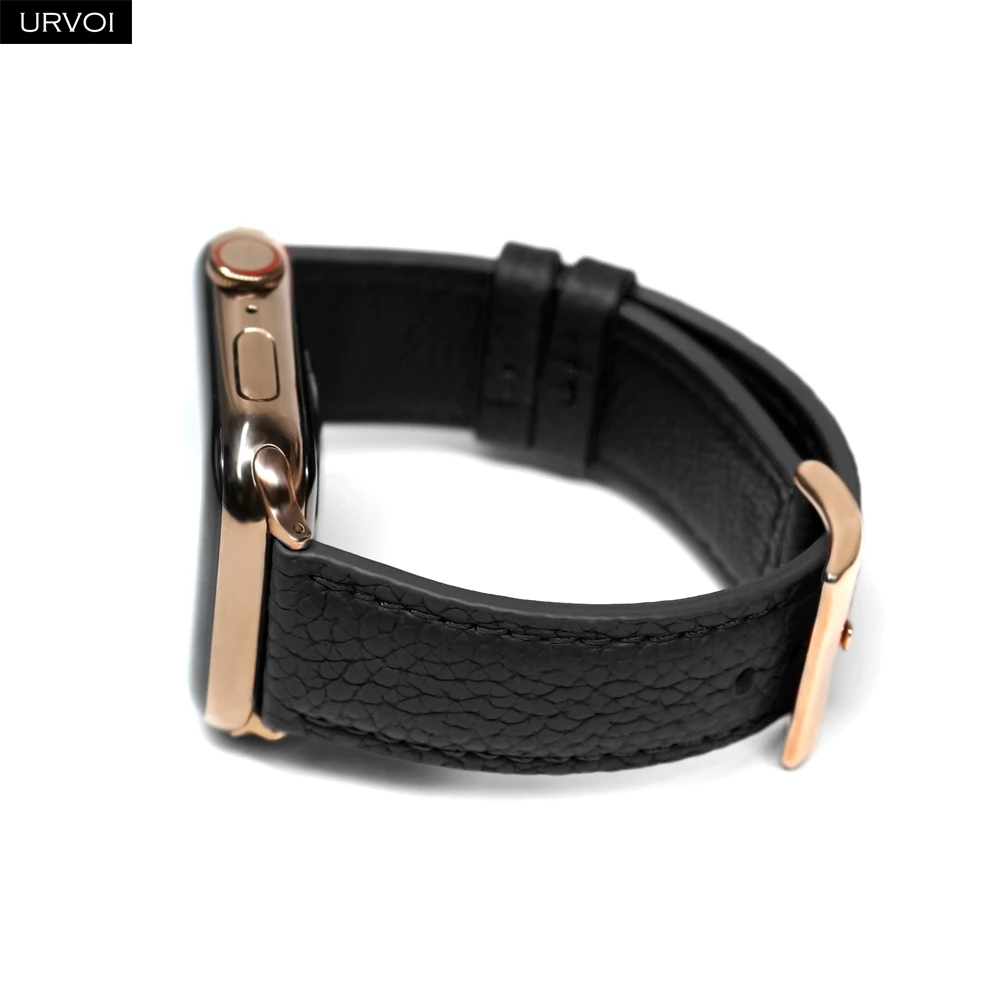 Ремешок URVOI для Apple Watch series 6 SE 5 4 3 2 1 из натуральной кожи с зернистой текстурой для iWatch с пряжкой черного цвета розового золота