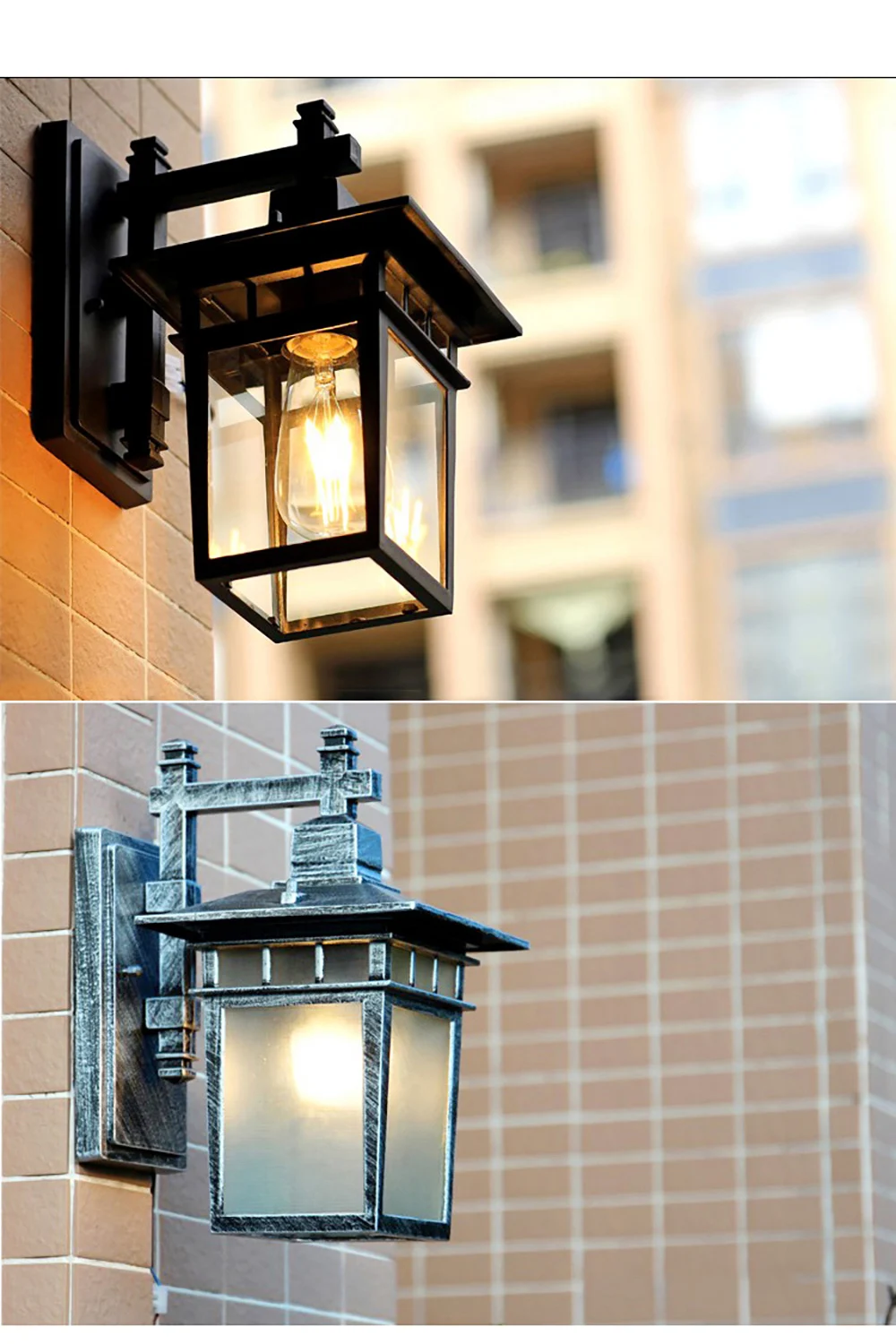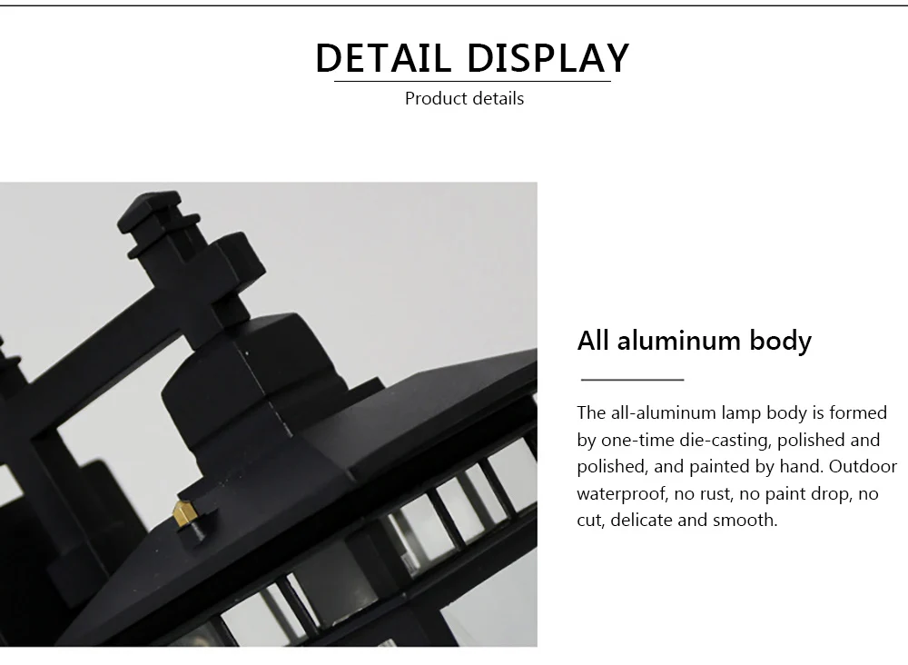 Название продукта: винтажный наружный алюминиевый настенный светильник Напряжение: 110-240 В Материал: алюминий + стекло Цвет: черный, бронзовый Тип: настенный светильник Источник светильник: E27 (без лампочки) Сцена: коридор, проход, сад, входная дверь, павильон, балкон