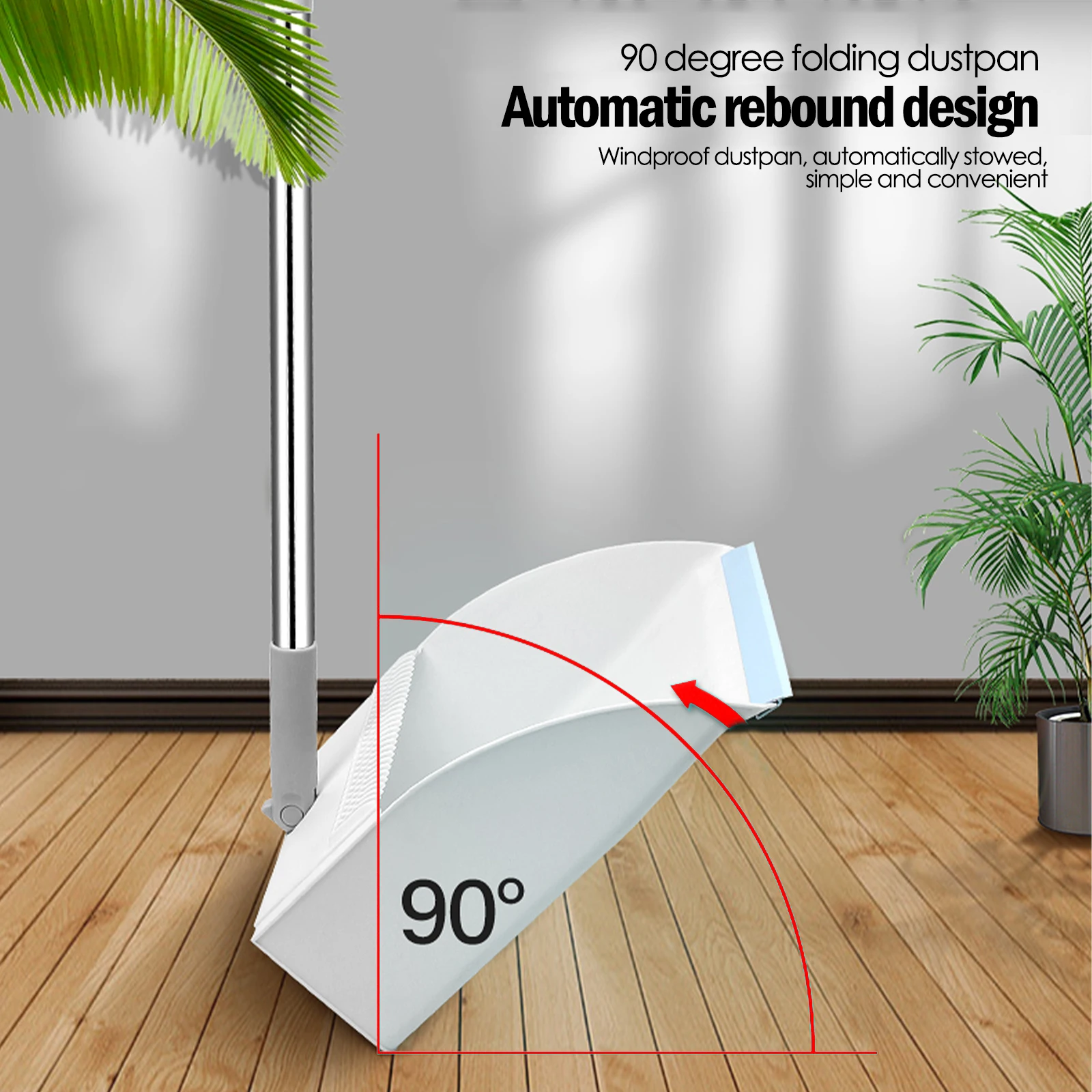 Складная пылесборник на 90 °: после вертикального складывания пылесборник закрывается и предотвращает выдувание мусора ветром, его можно хранить в каждом небольшом углу, чтобы сэкономить место и сделать вашу комнату более аккуратной.
