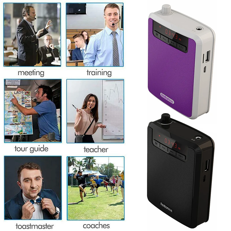 Поставляется с регулируемой талией или шейным ремешком и съемным зажимом для ремня, микрофоном для гарнитуры, удобной и идеальной для учителя, тренера, гидов, презентаций и т. д.