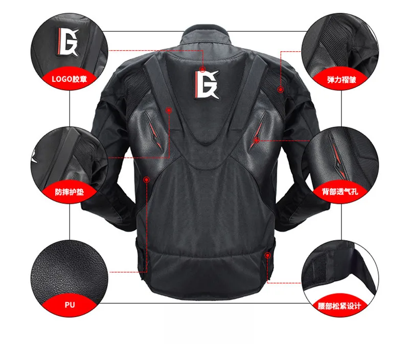 GHOST RACING Motorcycle Jacket PU Leather Racing Jacket Body Armor Protection Moto Motocross Off-road Clothing Protective Gear