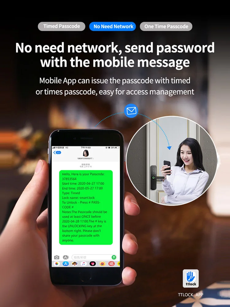3. (Удобно управлять), через приложение, вы можете проверить разблокировки записей, также вы можете поделиться временным кодом/ekey с посетителей, нянь, домработниц, арендаторов, гостей и т. Д. Поддерживает Android 4,3 или iOS 7,0 выше