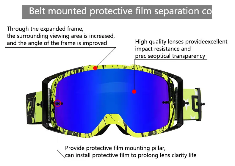 Совершенно новый и высокое качество. Светильник из каркаса и прочность могут складываться. Будет очень тяжелое ощущение и падение. Широкая Нескользящая эластичная лента, смелый дизайн, чтобы очки не соскальзывали с шлема. Вы можете регулировать длину зеркала с помощью различных лицевых поверхностей, чтобы обеспечить комфортную посадку. Высококачественный поликарбонатный Материал линз, закаленная защита от трения царапин. Рама сделана из гибкого пластика, трудно повредить.