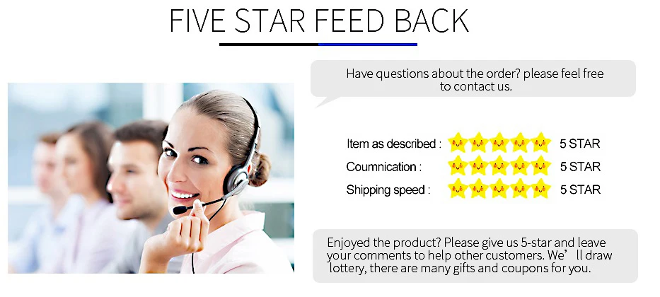 1. Если у вас есть дефектный товар, вы хотите вернуть его или сделать скидку. Пожалуйста, свяжитесь с нами в течение 2 дней с момента получения посылки. 2. Мы вернем вам деньги, когда получим возвращенный товар или заменим товар для вас. 3. Все возвращаемые товары должны быть возвращены в оригинальной упаковке и с аксессуарами. Заказчик несет ответственность за расходы по доставке возвращенных товаров. Гарантия: 1. Ограниченная гарантия производителя 12 месяцев на дефектные изделия (за исключением предметов, поврежденных и/или неправильно использованных после получения). Аксессуары поставляются с 3-месячной гарантией. 2. О бракованных товарах необходимо сообщить и вернуть в течение гарантийного срока (и, по возможности, в оригинальной упаковке). Вы должны описать дефект и предоставить номер вашего заказа. Мы не ремонтируем и не заменяем товары с истекшей гарантией. Вы соглашаетесь со всеми политики перечисленные выше при заказе на aliexpress! Отзывы: Мы поддерживаем высокие стандарты качества и стремимся к 100% удовлетворенности клиентов! Отзывы очень важна. Мы просим Вас немедленно связаться с нами, прежде чем давать нам нейтральные или негативные отзывы, чтобы мы могли разрешить возникшую проблемы максимально приятным для вас образом незамедлительно решить возникшие проблемы. Невозможно решить проблемы, если мы о них не знаем!