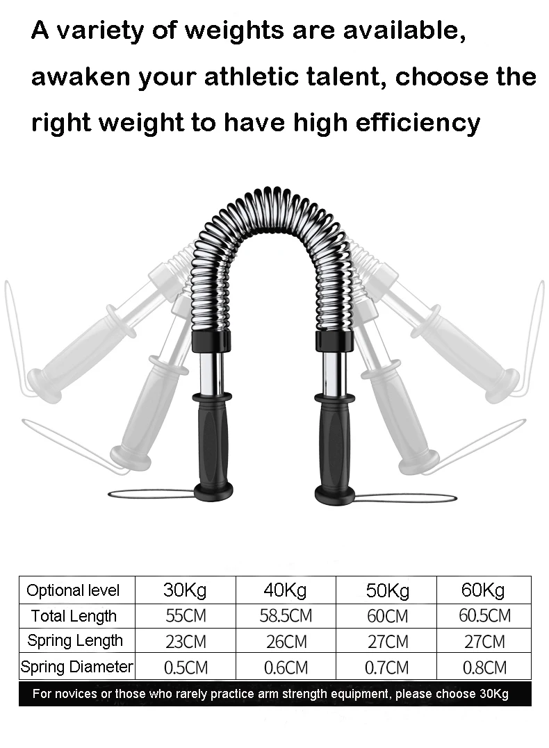Инструкции 1. Сгибайте руки и сгибайте пружины за шею. 2. Две руки вперед, сгиб пружины вверх, а затем предотвратить ослабление 3. Приблизьте руки к груди, согните пружину, затем выпрямите ее и медленно предотвратите ослабление. 4. Встаньте на ноги, согните правый локоть, согните пружину левой рукой, затем согните левый локоть и согните пружину правой рукой. 5. С обеих рук позади вас, крепко удерживайте пружину, затем выпрямите ее и сгибайте постепенно. Меры предосторожности 1. Пожалуйста, проверьте, являются ли соединительные части руки устройство для силы твердым и не свободным перед использованием. 2. Пожалуйста, выберите силовую машину, которая подходит для вашего уровня физической подготовки, чтобы избежать напряжения мышц. 3. При использовании Положите ремень безопасности на ручку подлокотника на запястье. 4. При использовании вы должны выбрать относительно просторное место для упражнений, чтобы не оторваться от рук и не повредить людям. 5. Рекомендуется, чтобы дети до 12 лет не использовали силовое оборудование для рук 6. При использовании, это должно быть сделано с равномерной скоростью.