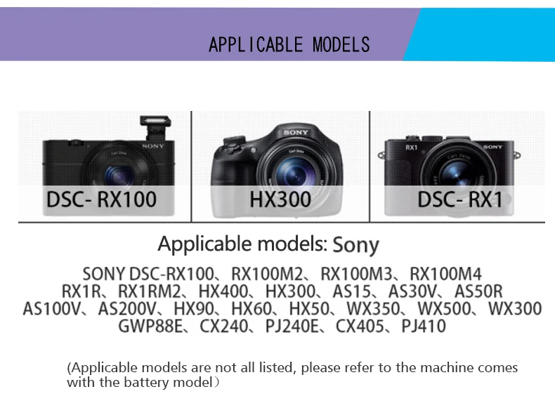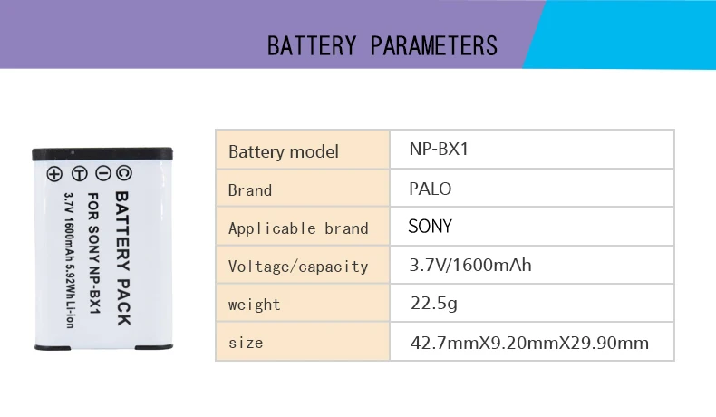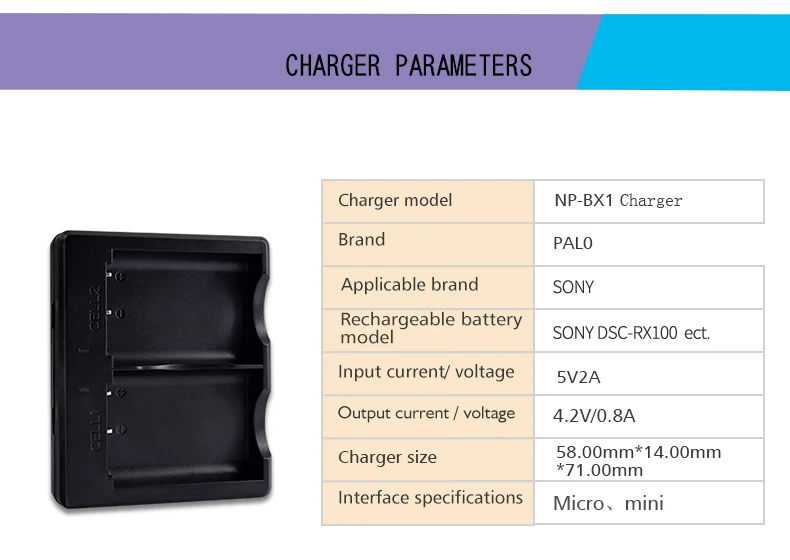 NP-BX1 зарядное устройство будет Совместимо с: NP-BX1 3,7 V/1600mAh литий-ионный аккумулятор для камер Sony Детали Sony Cyber-shot DSC-HX детали Sony Cyber-shot DSC-HX300 DSC-HX50 DSC-HX50V/B DSC-HX50VB DSC-HX60V Прочие серии Cyber-shot DSC-RX1R Cyber-shot DSC-RX1R/B Cyber-shot DSC-RX1 Cyber-shot DSC-RX100 Cyber-shot DSC-RX100 II Cyber-shot DSC-RX100/B Cyber-shot DSC-RX100M2 Cyber-shot DSC-RX100M2/B Cyber-shot DSC-RX1B Cyber-shot DSC-WX300 Cyber-shot DSC-WX300/B Cyber-shot DSC-WX300/L Cyber-shot DSC-WX300/R Cyber-shot DSC-WX300/T Cyber-shot DSC-WX300/W HDR-AS15 HDR-AS15B HDR-AS15S HDR-AS30V HDR-GW66V HDR-GW66VE HDR-GWP88 HDR-GWP88V HDR-GW66E HDR-GWP88VB HDR-GWP88VE RX100 HX50 HX300 WX300 HX400 H400 и HX300 новой камеры «рыбий глаз» DSC-H300 DSC-H400 DSC-HX50V DSC-HX80 DSC-HX90V DSC-HX300 DSC-HX400V DSC-RX1 DSC-RX1R DSC-RX1RM2 (RX1R II) DSC-RX100 DSC-RX100M2 (RX100 II) DSC-RX100M3 (RX100 III) DSC-RX100M4 (RX100 Характеристическая вязкость полимера) DSC-WX300 DSC-WX350 DSC-WX500 FDR-X1000V FDR-X1000VR HDR-AS10 HDR-AS15 HDR-AS20 HDR-AS30V HDR-AS50 HDR-AS50R HDR-AS100V HDR-AS100VR HDR-AS200V HDR-AS200VR HDR-CX240 HDR-CX405 HDR-CX440 HDR-MV1 HDR-PJ275 HDR-PJ440 Особенности: 1. Литий-ионные аккумуляторы премиум класса 2. Высокая плотность энергии, долгий срок службы, без памяти 3. Дополнительная мощность, больше снимков для ваших камер Характеристики для ЖК-зарядного устройства USB Вход: DC 5V / 1-2A 10W Выход: DC 4,2 V/0.6A 0,25 W Материал: АБС-пластик + Поликарбонат Тип батареи: литий-ионный аккумулятор
