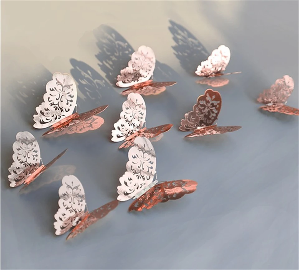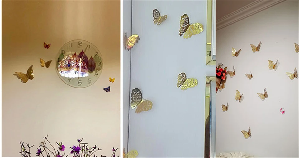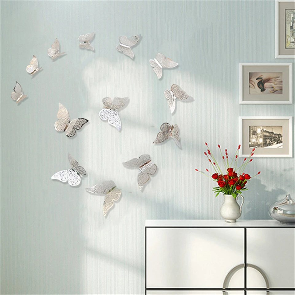 12Pcs 3D Hollow Butterflies Mirror Wall Stickers For kids Rooms Bedroom Living Room Fridge Decorative Wallpaper Home Wall Decor