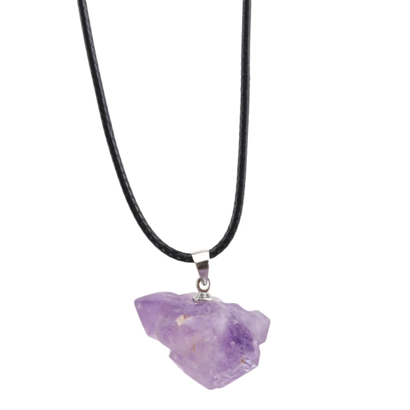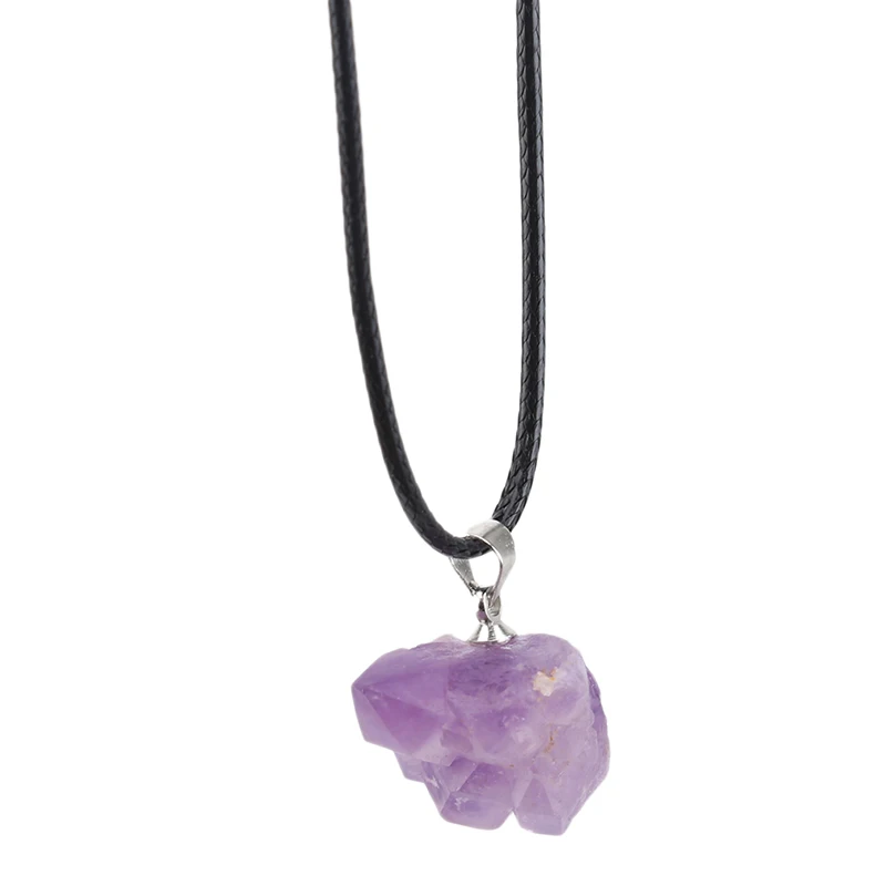 Ожерелье с подвеской из натурального камня, бразильские кристаллы аметиста, Нестандартная форма, лаванда, полудрагоценная чакра, рейки, необработанные драгоценные камни