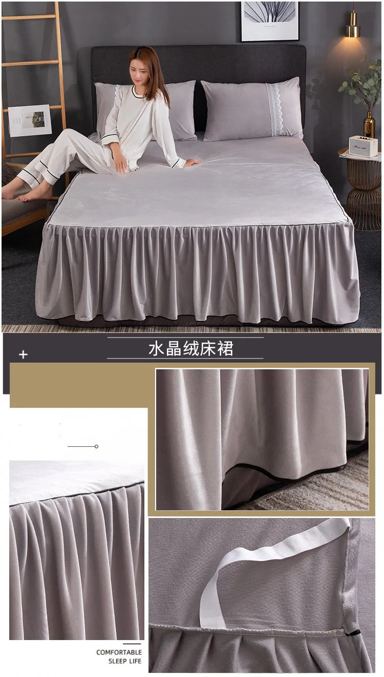 1/2 шт кровать юбка или наволочка кристалл бархат серый мягкий теплый матрас покрывало Европейская полная Королева 200*220 см