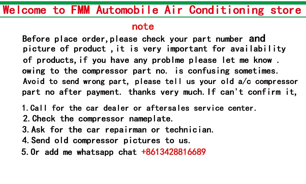 3. Пожалуйста, сообщите нам точную модель автомобиля, если у вас нет фото или OEM No.