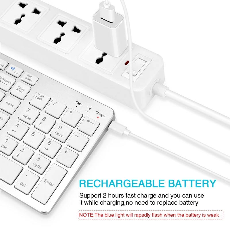 Беспроводная Bluetooth клавиатура перезаряжаемая ультра-тонкая клавиатура с номером Pad для ноутбука ПК Windows IOS