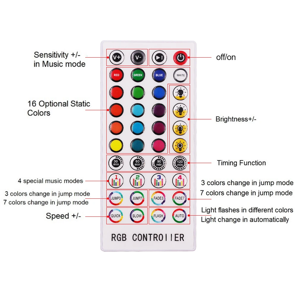 Название: 40-ключ ИК Bluetooth Музыка RGB контроллер