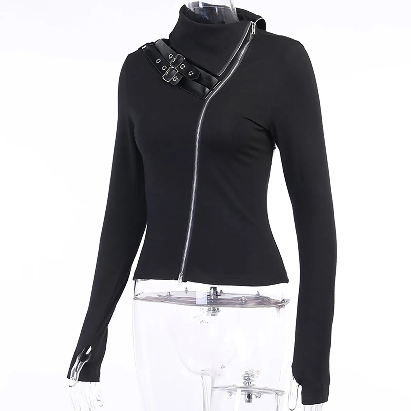 Женская сексуальная Облегающая рубашка с длинным рукавом на молнии