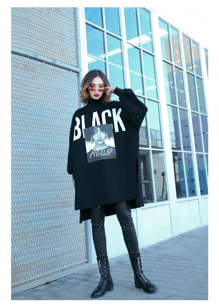 Женское флисовое черное платье с капюшоном, Осень-зима 2020, толстый свитер бойфренда с вырезом, Раздельный укороченный подол, 3 цвета, пуловер