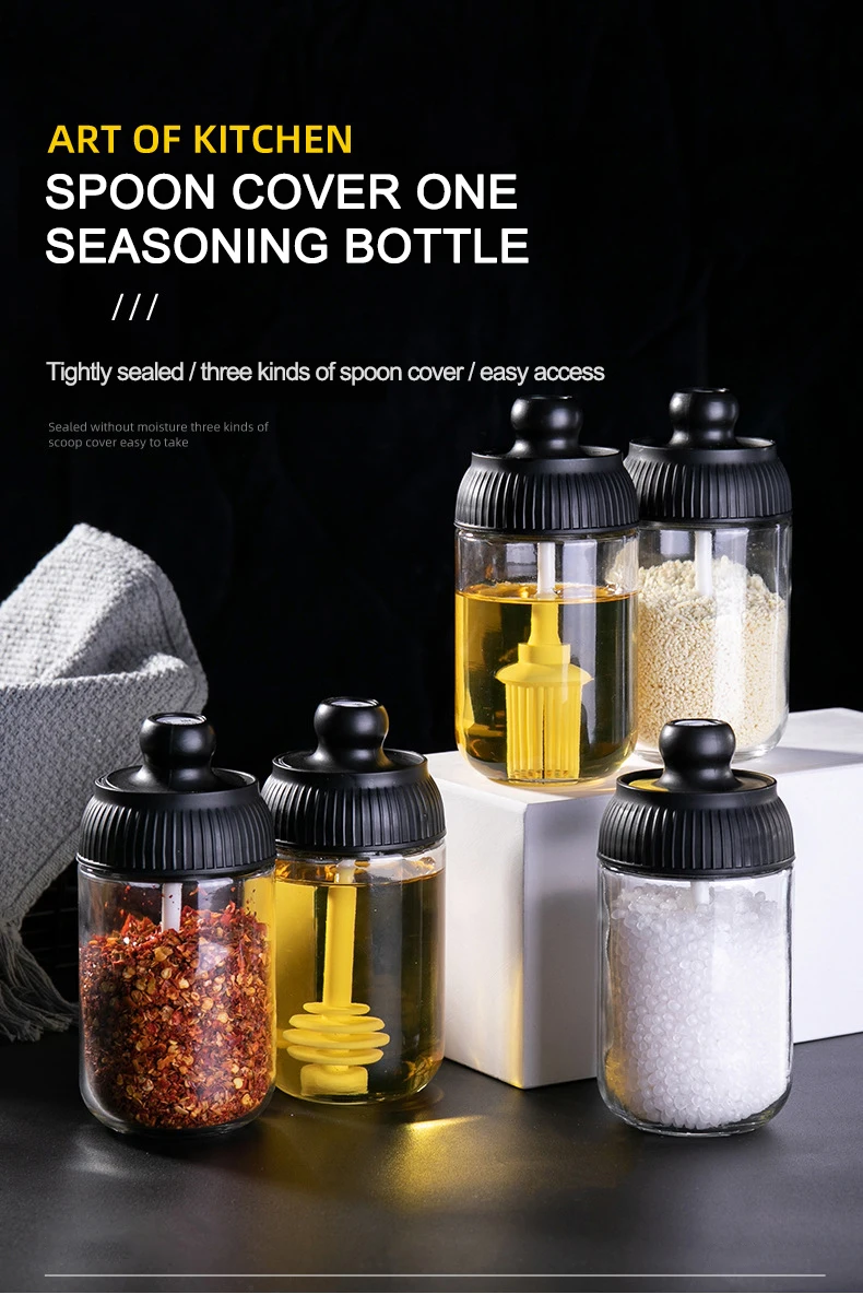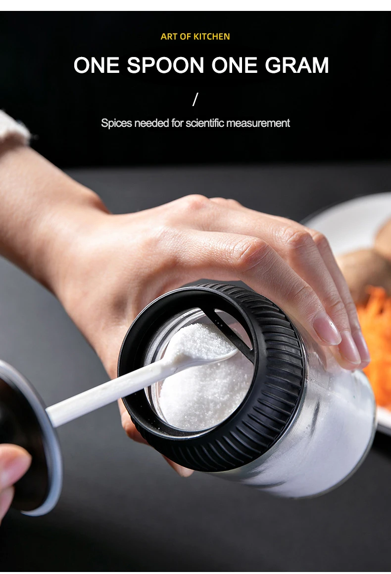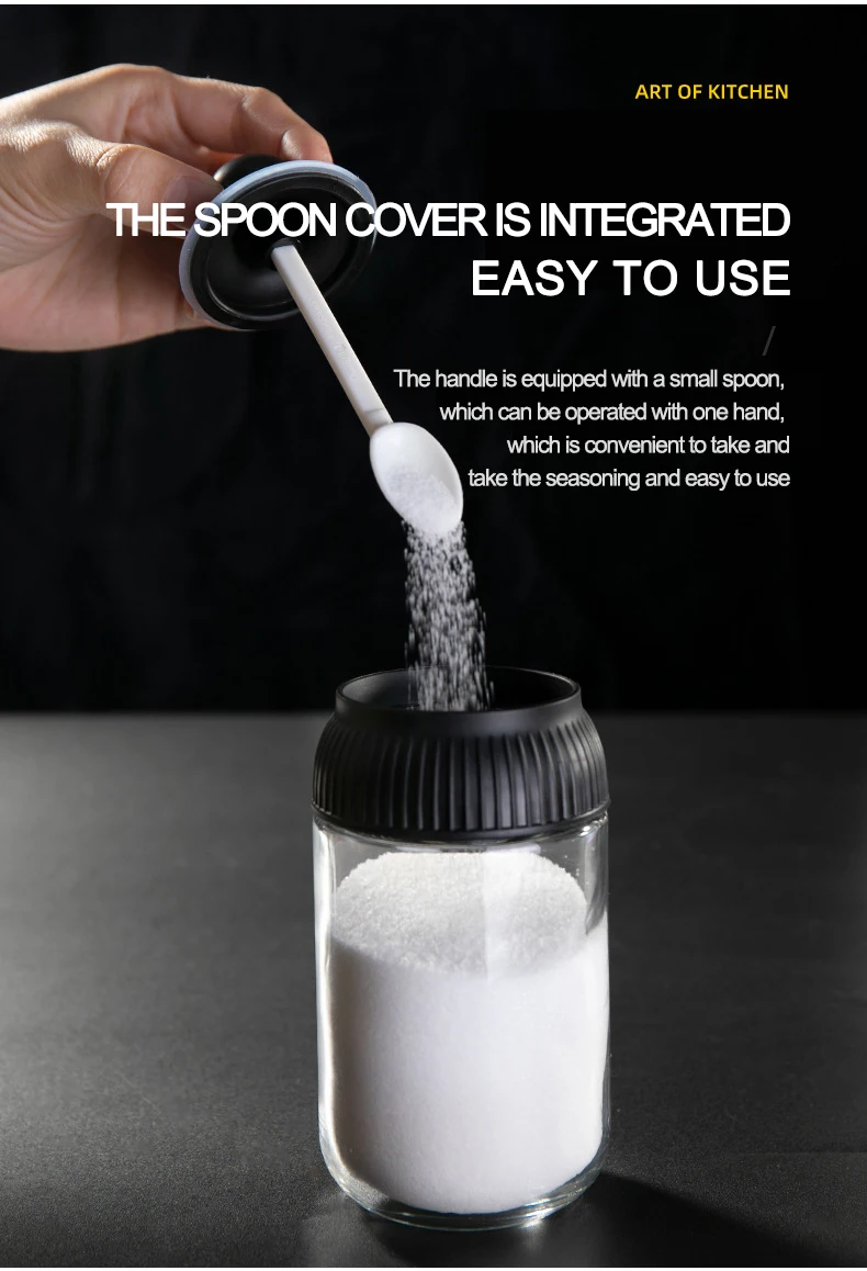 -- 2 --. Интегрированная крышка ложки для легкого использования; Ручка оснащена маленькой ложкой и может работать одной рукой. Удобно брать приправы и использовать их.