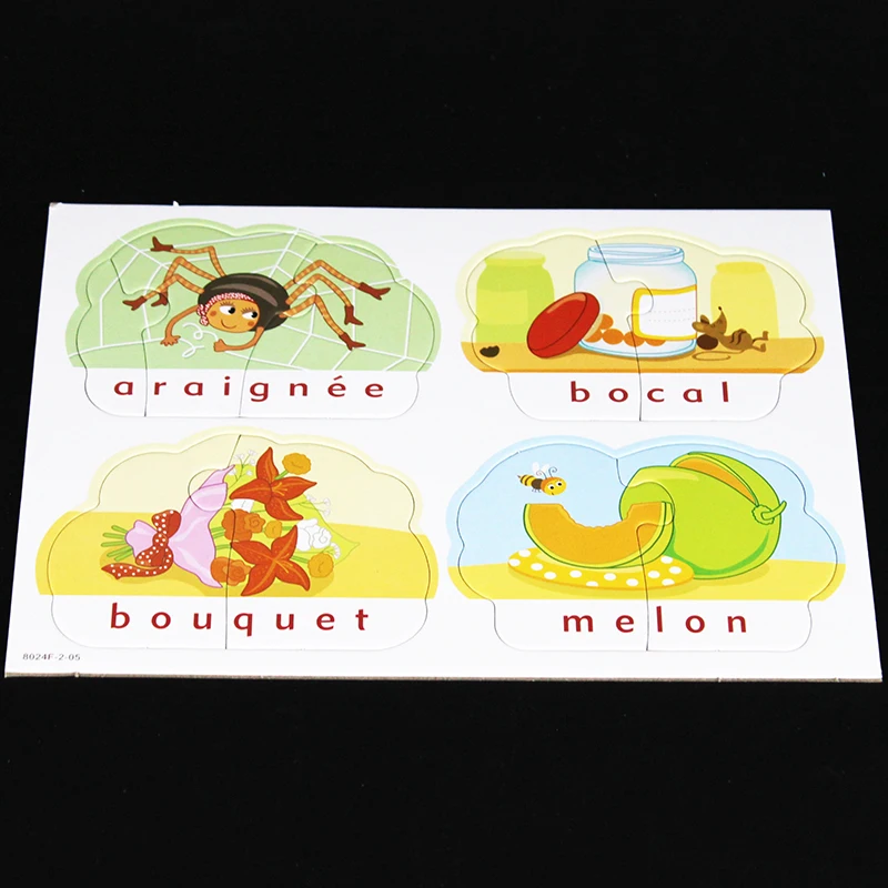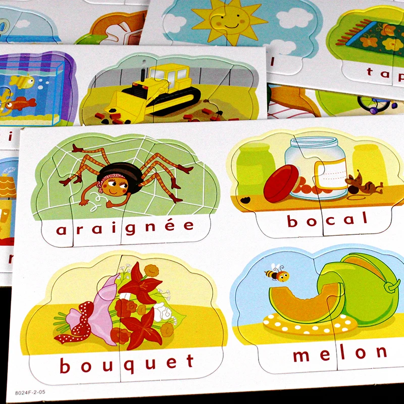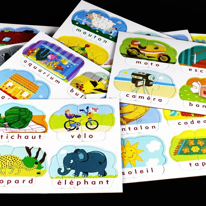 Французские слова головоломки Размер изделия: 18 см * 24,5 см Количество: 10 шт. Цвет: одни и те же фото Особенности: абсолютно новый товар Материал: бумага Для детей старше 3 лет Лучшие подарки для игры родителей и детей