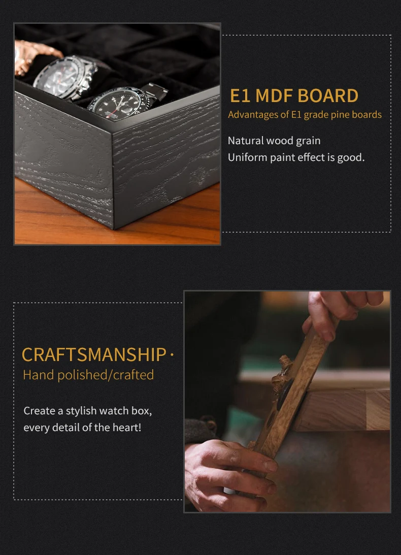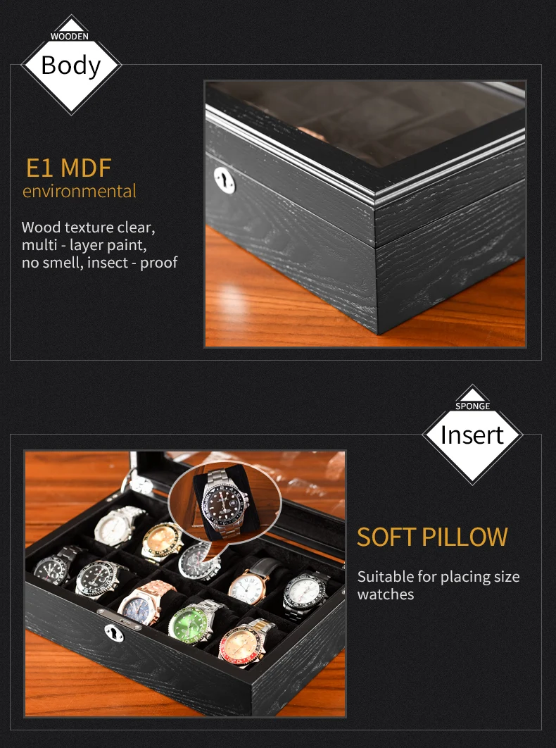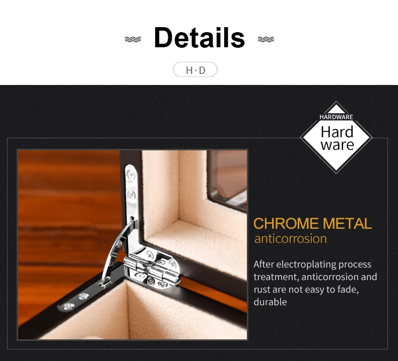 -Материал: твердая древесина + лак -Вставка: мягкий бархат внутри -Металл: стальные хромированные детали -Окно: закаленное стекло -Размер коробки: > 5 балок: 330*120*100 мм, 1,5 кг > 10 балок: 330*220*100 мм, 2,5 кг -Безопасная упаковка и бесплатная доставка