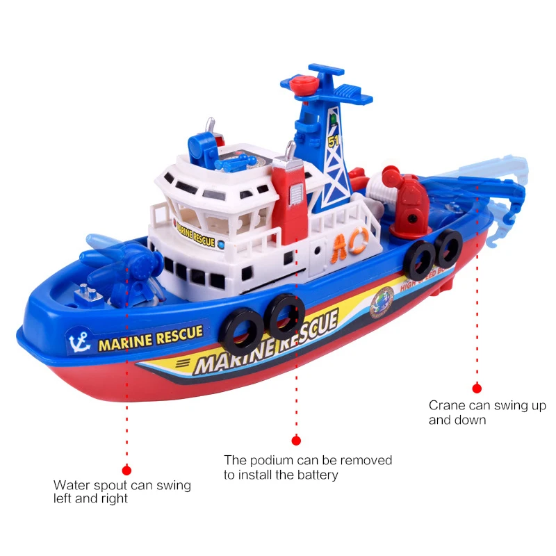 The boat can flash red and blue lights and send out police siren, just like a tiny real fire boat