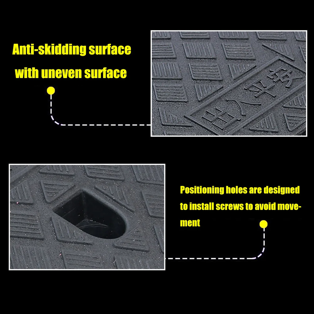 Сборные отверстия: Встроенные монтажные отверстия в нижней части каждой рампы могут быть использованы для постоянной установки наружной пороговой рампы в областях с высоким потоком движения. Имеет текстурированную поверхность для увеличения трения или тяги и имеет угловой поперечный рельс.