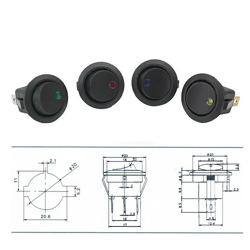 Электрический срок службы: 10 000 раз; Диаметр: 20 мм/0,8 дюйма;