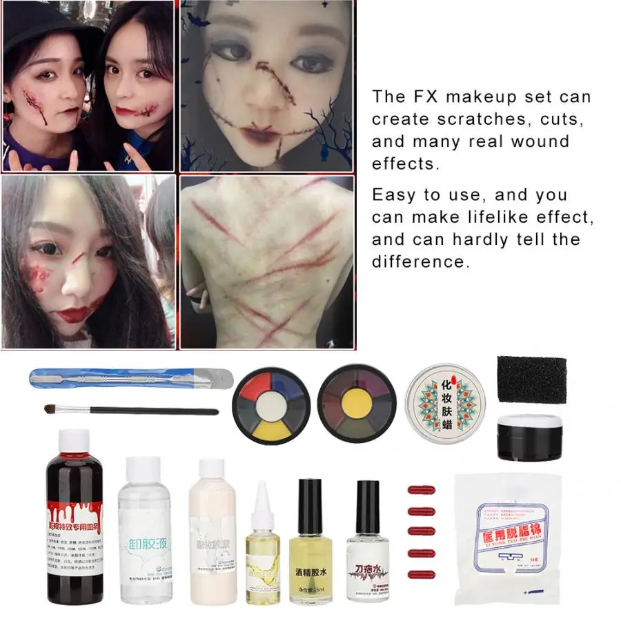 Профессиональный Хэллоуин шпатель поддельные шрамы крови рана воск для удаления FX макияж эффект набор инструментов