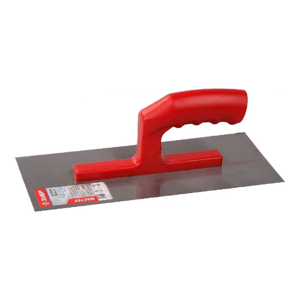 Гладилка Зубр стальная с пластмассовой ручкой , 130х280 мм, состоит из пластмассового полотна, толщиной 3 мм и пластмассового держателя. Преимущество такой гладилки: легкость и не подверженность коррозии. Используется для нанесения и распределения на поверхности штукатурного раствора.