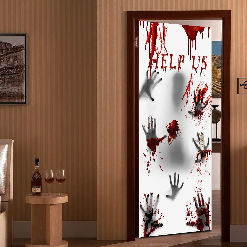 Наклейка на стене на Хэллоуин окровавляющая ручная печать наклейки на дверь наружная страшная дверь занавес жуткая декорация наклейки праздничная атмосфера